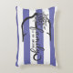 Nautical My Family Is My Anchor Accent Pillow. Background is navy blue and white stripes.