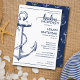 Celebrate the new mum to be with this nautical-inspired baby shower invitation. This card features a large sketch anchor on the left side with the text to the right. Baby is written in a hand-lettered font and a special heart beside the shower. The back of the card has an anchor pattern.