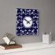 Vintage Floral Black and White Damask Pattern Aqua Teal and Mustard Yellow Love Bird Clock with a touch of Apple Kelly Green