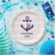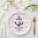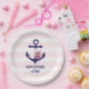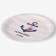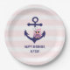 Nautical Navy Anchor Pink Owl and Stripes Birthday Paper Plate