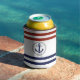 Nautical navy anchor/rope, red/blue stripe can cooler