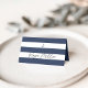 Folded place cards or escort cards match our Nautical Mix wedding collection and feature tiny navy blue anchor illustrations and a navy and white striped background. Personalise the back with your names or initials and wedding date.