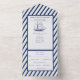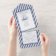 A very beautiful and elegant navy and white striped print wedding invitation, with navy yacht accent.