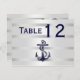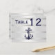 Elegant Nautical Navy Blue Anchor, Silvery White Background - Table Number Card