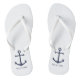 Modern Minimalist Nautical Flip Flops features navy blue anchor with personalised name in navy blue modern sans serif font style on white background.