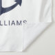 Modern Minimalist Nautical Tapestry featuring navy blue anchor with personalised name in navy blue modern sans serif font style on white background.