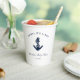 The nautical anchor design adds a timeless aesthetic to this baby shower paper cups. Featuring your pirate saying, and a navy blue anchor and rope, personalise to create unique nautical paper cups for your upcoming baby shower.