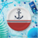 Nautical navy blue anchors with red and navy blue stripes on a red and white background. Matching items available in our store.