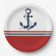 Nautical Navy Blue Anchor Blue White Red Stripes Paper Plate