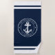 Nautical Navy Blue Anchor Boat Name Custom Beach Towel