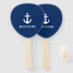 Nautical Navy Blue Anchor Boat Name Hand Fan Paddle Style