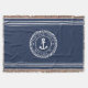 Nautical Navy Blue Anchor Boat Name Throw Blanket