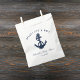 The nautical anchor design adds a timeless aesthetic to this baby shower favour bag. Featuring your pirate saying, and a navy blue anchor and rope, personalise to create unique nautical favour bag for your upcoming baby shower.