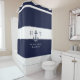 Nautical Navy Blue Anchor Coastal Monogram Name Shower Curtain