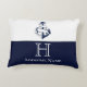 Nautical Navy Blue Anchor Coastal Monogrammed Decorative Cushion