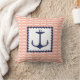 Nautical Navy Blue Anchor Coral Pink Waves Cushion