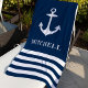 Nautical Navy Blue Anchor Custom Name Beach Towel