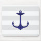Nautical Navy Blue Anchor Grey White Stripes Mouse Pad
