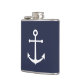 Modern Minimalist Nautical Flask featuring white anchor on navy blue background.