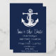 Anchor, nautical, modern, QR Code, navy blue, silver foil Wedding Save the Date. You can personalise it with your own details, and add your own QR code.