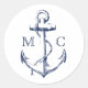 Nautical Navy Blue Anchor Monogram Classic Round Sticker