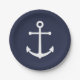 Modern Minimalist Nautical Paper Plate feature white anchor on navy blue background.