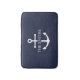 Personalised nautical bath mat with a white anchor design and custom family name in a white classic serif font on navy blue background.