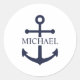 Nautical Navy Blue Anchor Personalised Name Classic Round Sticker