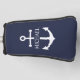 This personalised gift features a white anchor design with custom name in a classic white serif font on navy blue background. A thoughtful nautical gift idea for beach house décor, Father’s Day gift for dad, thank you gift for groomsmen, or a unique present for any special occasion.
