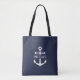 Nautical Navy Blue Anchor Personalised Name Tote Bag