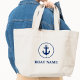 Nautical Navy Blue Anchor Rope Jumbo Tote Bag