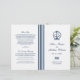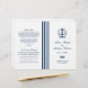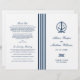 Elegant wedding ceremony program includes a boat anchor with tied rope monogram and stripe detail where the programs should be folded. Personalise the navy blue custom text on the front and inside pages with your ceremony information and thank you message. Note: these text weight paper programs arrive flat and require folding to assemble. The white background can be customised.