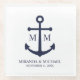 Designed with a navy blue anchor illustration, it features personalised bride and groom monogram, name, and wedding date in a navy blue serif font on a white background.