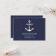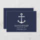 This reception card features an illustration of white anchor with details in white modern sans serif font style on navy blue background.