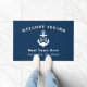 Nautical Navy Blue Anchor Welcome Aboard Boat Name Doormat