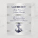 Elegant Nautical Navy Blue Anchor, White with Silver Look Stripe Background - Save the Date Postcard =========