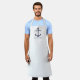 Modern Minimalist Nautical Apron featuring navy blue anchor with personalised name in navy blue modern sans serif font style on white background.