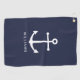 Nautical Navy Blue Anchor with Custom Name Golf Towel