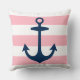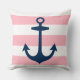 Nautical Navy Blue Anchor with Pink Stripes Cushion