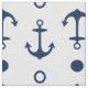 Custom fabric features a nautical boat anchor and geometric circle pattern in navy blue. White background colour can can be customised.
