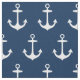 Nautical Navy Blue and White Anchors Pattern Fabric