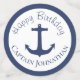 This custom party confetti features a navy blue and white nautical theme. Each piece features an image of a boat anchor. The front side features a white background white a navy blue coloured boat or ship anchor and the back side features a navy blue background with white anchor. The large pieces feature sample text with a "Captain" title and sample name printed at the bottom. You can personalise the confetti to include your own event type, Captain name, or other custom text.