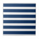 Nautical navy blue and white bold stripes custom colour ceramic tile. Trendy tiles for home decorations like bathroom or kitchen wall. Add your own personalised text or image optionally. Available in big and small sizes. Striped design, great for backsplash and other decor in beach home or lake house. Fun interior designer tiles.