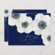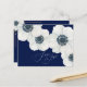 Nautical Boutique Co.'s navy blue and white Save the Date postcard design features modern flowing script typography paired with a traditional block font, giving this design upscale style. It's accented with beautiful watercolor white anemone windflowers with blue centres with nautical rope border and set on a rich navy blue background. The reverse side is navy blue with over-sized white anemone windflowers. #Nautical #Anemone #SaveTheDate #RedWhiteBlue