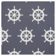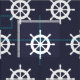 Nautical navy blue and white ship wheel pattern fabric