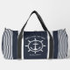 Nautical Navy blue and white striped with Anchor Duffle Bag