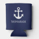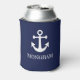 Nautical Navy Blue Boat Name Anchor Can Cooler