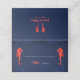 Nautical Navy Blue Coral Seahorses Beach Wedding Place Card