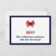 Personalise this RSVP with your wedding information. These RSVPs are perfect for nautical, ocean, coastal, seaside, beach and destination weddings. The design has an elegant navy blue border with a red crab motif.