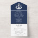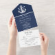 Nautical Navy Blue Elegant Modern Ocean Wedding All In One Invitation